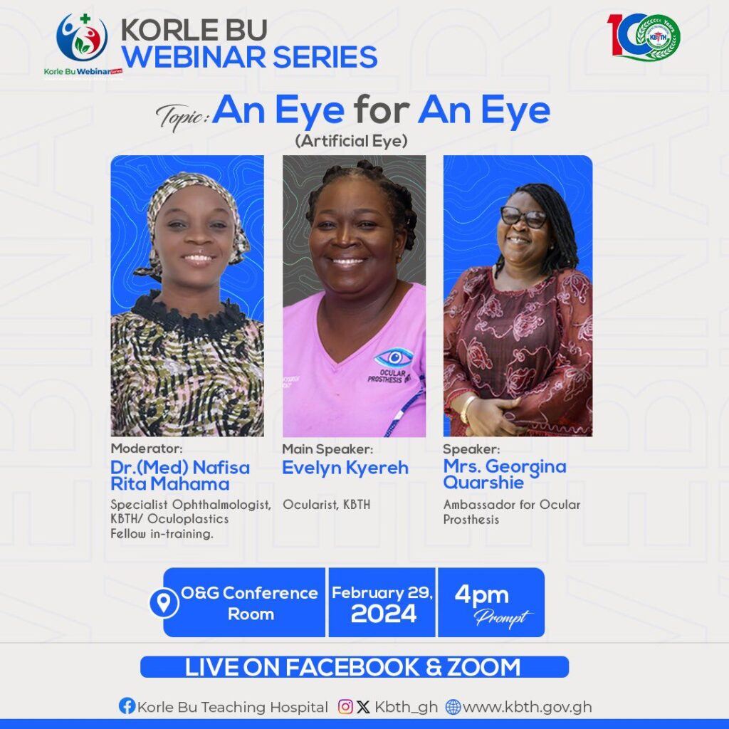 The information contained in this post is for general information purposes only. The information is provided by Korle bu Teaching Hospital-An Eye for An Eye (Artificial Eye) and while we endeavour to keep the information up to date and correct, we make no representations or warranties of any kind, express or implied, about the completeness, accuracy, reliability, suitability or availability with respect to the website or the information, products, services, or related graphics contained on the post for any purpose.